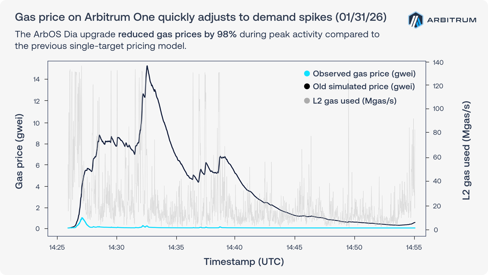 As more users and businesses move onchain, demand will increasingly arrive in bursts, not smooth curves. These results suggest Arbitrum’s Dynamic Pricing approach is doing what institutions need it to do: absorb high demand while keeping fee behavior predictable enough to ship reliable user experiences at scale.